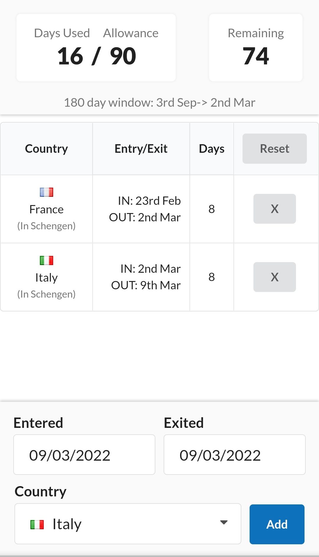 The calculator can be used with either existing plans to verify they're within the allowance, or experiment with possible future dates to optimise your travel time.